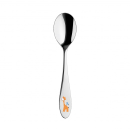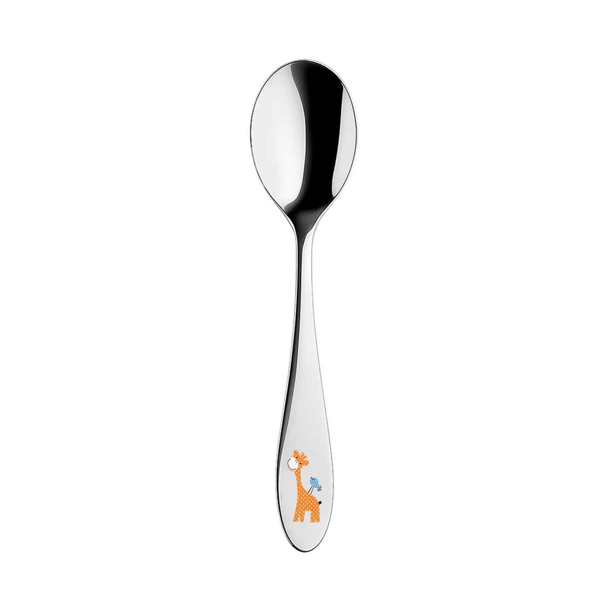 Dětská lžíce s barevným dekorem žirafy. Materiál: kvalitní nerez. Tvar přizpůsobený dětem. Lze mýt v myčce na nádobí, ale nedoporučujeme, mohlo by dojít k porušení barevného dekoru, což později nemůže být důvodem reklamace. Rozměry: (délka/šířka) lžíce 15,5/3,5 cm.