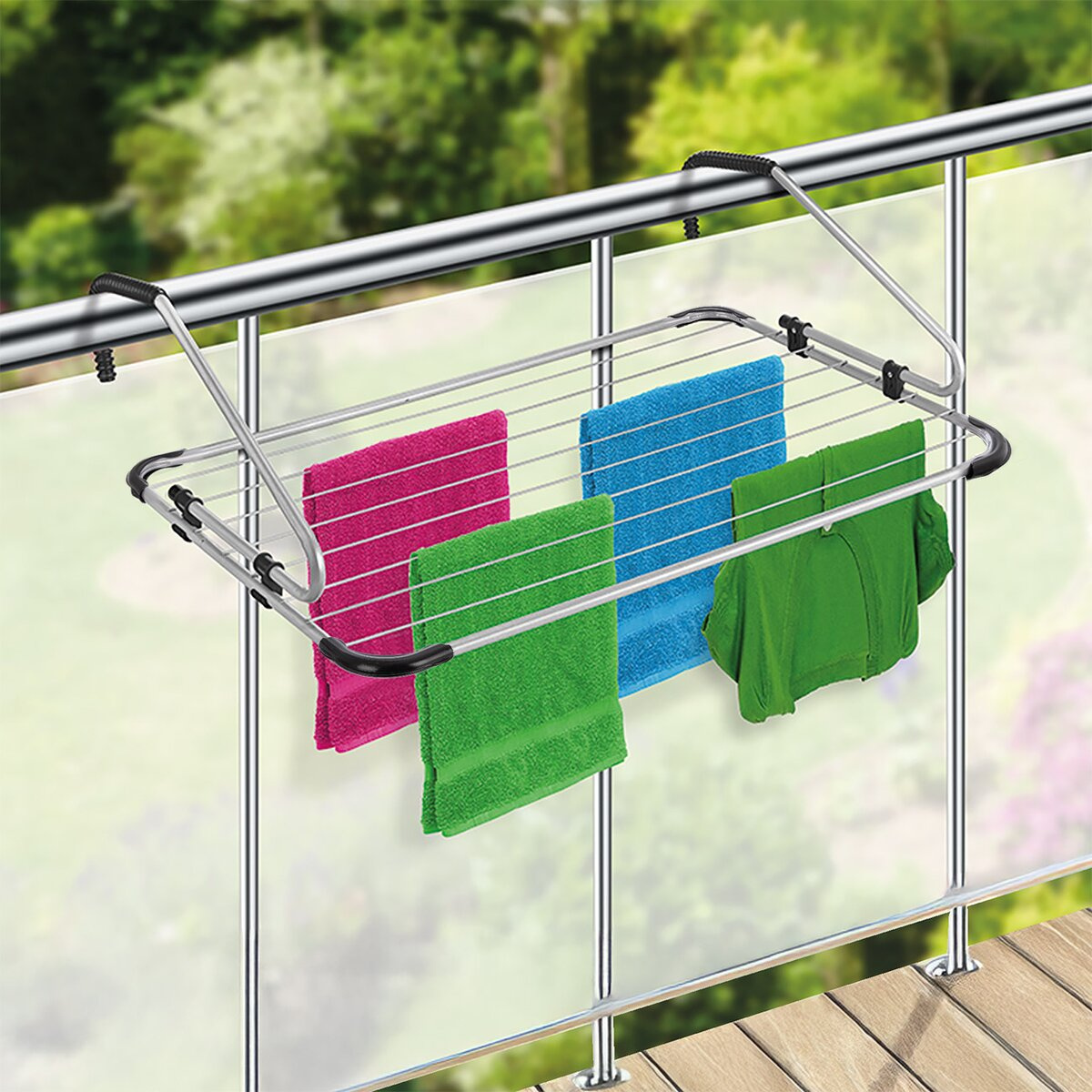 Závěsný rozkládací sušák na balkon je praktickým řešením pro sušení prádla v exteriéru, zejména tam, kde je omezený prostor. Je ideální pro menší množství prádla či každodenní sušení drobných oděvů. Díky jednoduchému zavěšení na balkonové zábradlí a skladnému provedení je sušák pohodlný na používání i ukládání. Nabízí sušicí plochu o délce 10,5 metrů. Materiál: kov s povrchovou úpravou + plastové PP komponenty. Rozměry: 107x56x24 cm. Nosnost 5 kg.