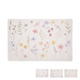 Prostírání s dekorem jarních květin je praktickým i dekorativním doplňkem, který ochrání stůl nebo ubrus před ušpiněním. Zároveň svým svěžím květinovým motivem rozjasní prostřený stůl a vnese do každého stolování jarní atmosféru. Materiál: plast EVA. Rozměry: 43,5x28,5 cm.