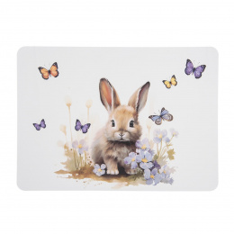 Prostírání s dekorem zajíčka ochrání stůl před poškozením a vytvoří pěknou dekoraci nejen při stolování. Jarní motiv využijete i na Velikonoce. Z kolekce výrobků JARO. Materiál: plast PP. Rozměry: 35x25 cm. Pro děti od 3 let.