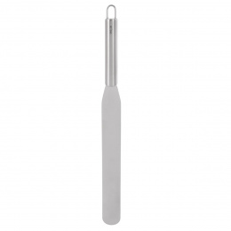 Roztírací nerezová lopatka z kolekce KITCH je ideálním pomocníkem pro přesné a rovnoměrné rozetření krému, polevy nebo čokolády na dorty. Díky dlouhé čepeli snadno pokryjete větší plochy. Lopatka je vhodná jak pro domácí pečení, tak pro profesionální cukrářskou práci. Rukojeť je opatřena očkem pro snadné zavěšení. Není vhodná do myčky na nádobí. Materiál: nerezová ocel. Rozměry: d. 37,5 cm, š. 3 cm, d. roztírací plochy 25 cm.