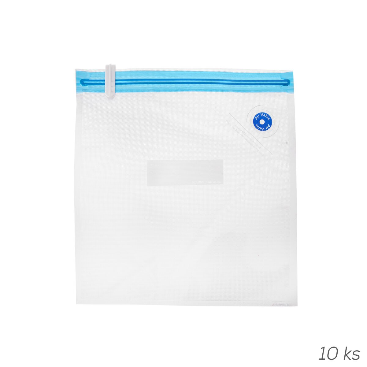 Uzavíratelné vakuovací sáčky do vakuovaček potravin se zipovým uzávěrem a vzduchotěsným odsávacím ventilem jsou vyrobeny ze speciální odolné fólie, kterou lze umývat a opakovatelně používat. Uloží potraviny v lednici, v mrazáku i v potravinové skříňce. Potraviny v nich vydrží až 5x déle čerstvé než v běžných sáčcích. Jedna strana transparentní, druhá má speciální vroubky pro snadné a rychlé vakuování. Barevný štítek umožňuje zapsání data uchování nebo vyznačení druhu potravin. Sada 10 ks. Součástí jsou 2 plastové jezdce pro snadnější uzavírání. Použití od -20 °C do +110 °C. Plňte pouze po vyznačenou rysku. Neobsahuje BPA. Materiál: nylon (PA)-PE. Rozměry: 26x28 cm (+/- 0,5 cm). Využijete k vakuovačce 131519 z naší nabídky. Nelze používat v MVT.