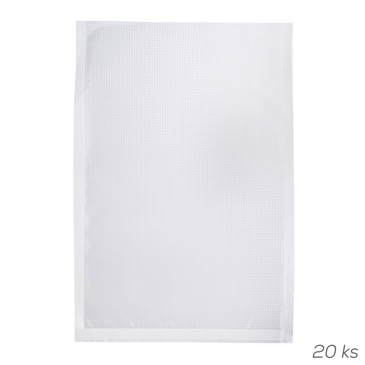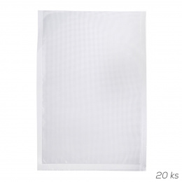 Vakuovací sáček do vakuovaček je vyroben ze speciální odolné fólie, kterou lze umýt a opakovaně použít. Je vhodný do mrazničky, ledničky i pro moderní přípravu jídla metodou Sous-vide (vaření potravin, které jsou zavakuované bez přístupu vzduchu v sáčcích). Použití od -20 °C do +110 °C. Udrží potraviny až 5x déle čerstvé. Jedna strana je transparentní, druhá má speciální vroubky pro snadné a rychlé vakuování. Neobsahuje BPA. Materiál: nylon (PA)-PE. Sada 20 ks. Rozměry: 40x28 cm, tl. 0,09 mm. Využijete k vakuovačce 131519 z naší nabídky. Nelze používat v MVT.