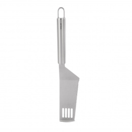 Nerezová krájecí lopatka z kolekce KITCH s ostrým vroubkováním je určena pro snadné krájení a servírování nejrůznějších dezertů. Lze ji využít také na porcování měkkých a plísňových sýrů nebo jako obracečku. Rukojeť je opatřena očkem pro snadné zavěšení. Není vhodná do myčky na nádobí. Materiál: nerezová ocel. Rozměry: d. 28 cm, š. 4,7 cm, d. plochy lopatky 11,2 cm.