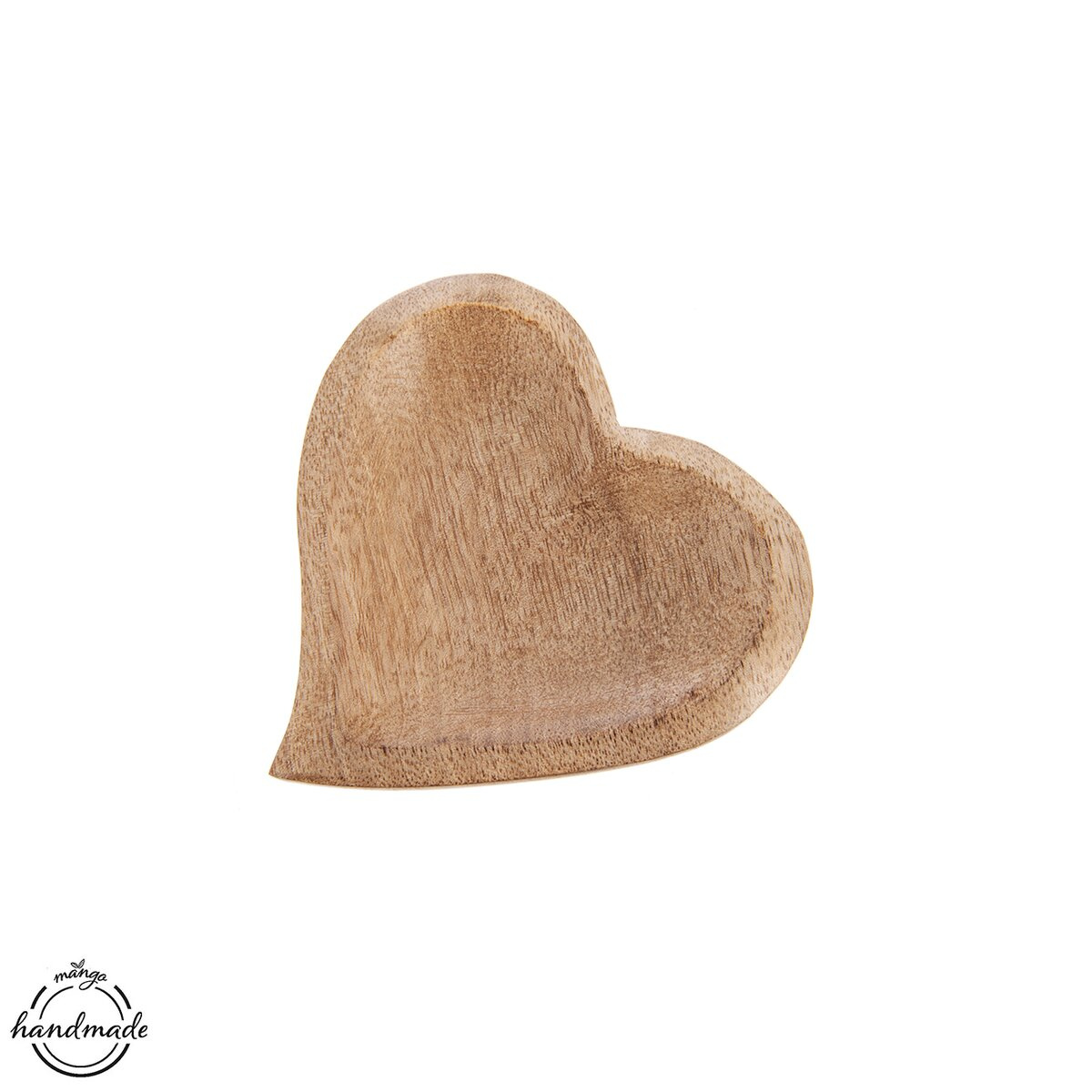 Servírovací miska z přírodního materiálu ve tvaru srdce. Skvěle se hodí pro servírování suchých plodů, sušeného ovoce, ořechů, bonbónů... Samotná je pěknou dekorací, lze ji doplnit přírodninami. Materiál: mangové dřevo. Rozměry: 12x12x2,5 cm. Nelze mýt v myčce na nádobí, nemáčejte, pouze otírejte vlhkým hadříkem.