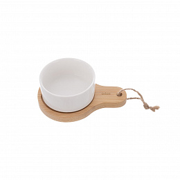 Miska s bambusovým táckem z kolekce WHITELINE je elegantní a praktický doplněk pro servírování různých pochoutek. Skvěle se hodí k podávání omáček, dipů, pomazánek nebo menších chuťovek, jako jsou olivy, kousky sýrů či jiné drobné delikatesy. Porcelánová miska je vhodná jak do myčky nádobí, tak do MVT, což usnadňuje její používání i údržbu. Bambusový tácek slouží nejen jako stylový podstavec, ale i jako ochrana stolu před případným ušpiněním – ten však není určen do myčky ani MVT. Tato kombinace porcelánu a přírodního bambusu spojuje funkčnost s estetickým vzhledem a je ideální pro každodenní použití i pro slavnostní příležitosti. Materiál: porcelán, bambus, jutový provázek. Rozměry: miska pr. 6,8 cm, v. 3,3 cm, o. 80 ml, tácek 11,5x7,8x1 cm, celková v. 4,2 cm.