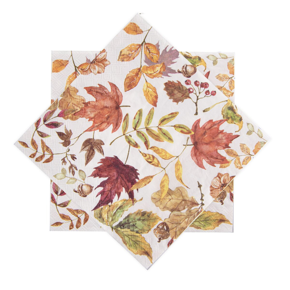 Ubrousek s tištěným podzimním dekorem. Sada 20 ks. Třívrstvý. Materiál: papír. Rozměry: 33x33 cm.