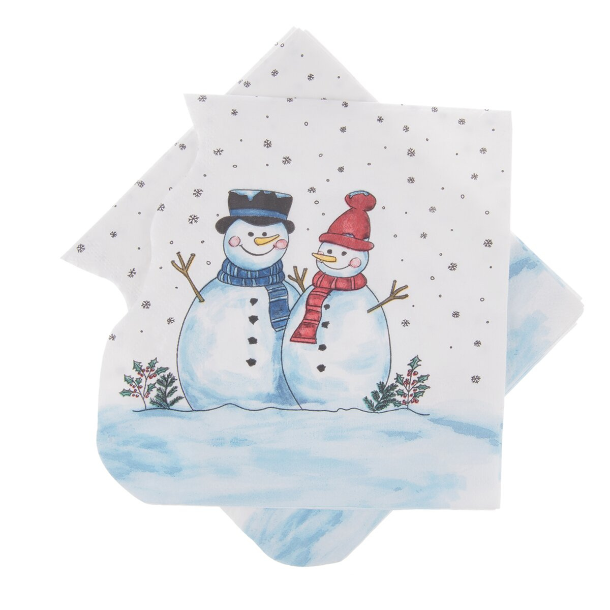 Tvarovaný ubrousek s tištěným zimním dekorem. Sada 20 ks. Třívrstvé. Materiál: papír. Rozměry: 33x33 cm.