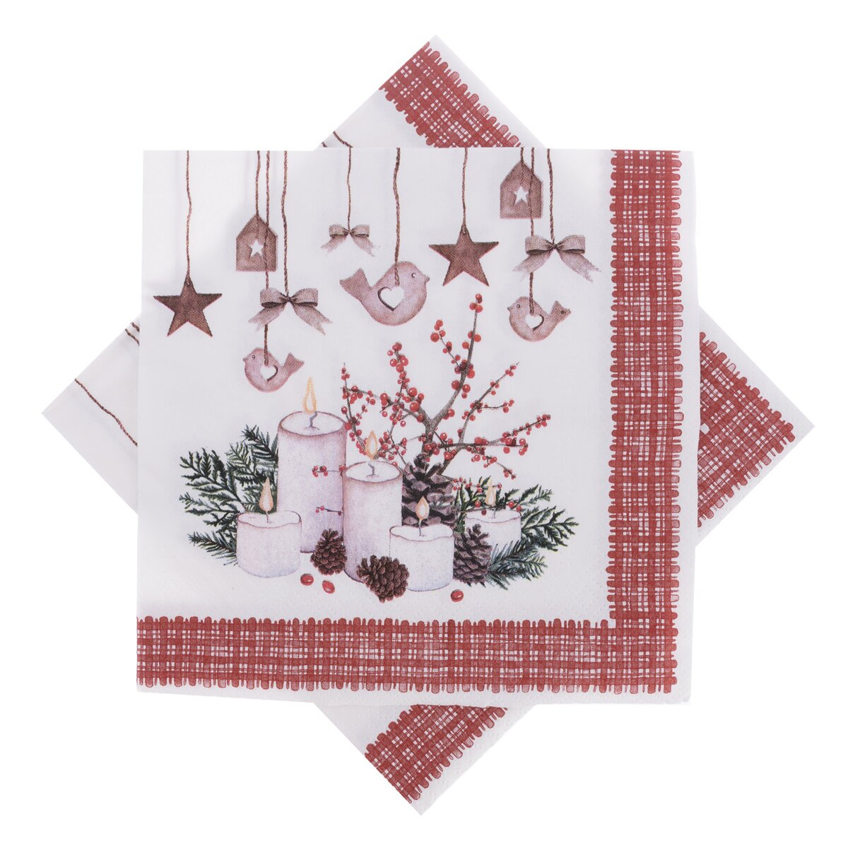Papírové ubrousky s tištěným decorem doplní vaše stolování o elegantní a stylový dotek. Nejsou pouze praktickým pomocníkem při jídle, ale zároveň působí jako ozdoba slavnostního stolu. Jsou vhodné na rodinné večeře. Díky kvalitnímu třívrstvému papíru jsou pevné a příjemné na dotek, což zajišťuje pohodlí při používání. Sada 20 ks. Materiál: papír. Rozměry: 33x33 cm.
