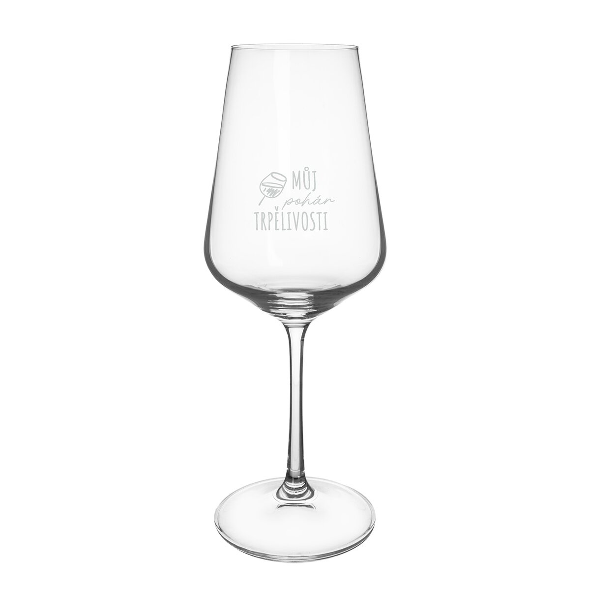 Elegantní sklenice na nožce na víno s dekorem MŮJ POHÁR TRPĚLIVOSTI je vyrobena z kvalitního českého skla. Díky svému nadčasovému vzhledu se skvěle hodí jak pro slavnostní příležitosti, tak pro každodenní stolování. Materiál: české sklo. Rozměry: pr. 9 cm, v. 23,8 cm, o. 450 ml. Není vhodná do myčky. Designed by Orion.