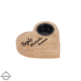 Svícen ve tvaru srdce je minimalistickým a stylovým doplňkem do domácnosti. Na jeho povrchu je jemný nápis „Teplo šťastného domova“, který navodí příjemnou atmosféru a pocit útulnosti. Tento svícen se skvěle hodí na noční stolek, poličku nebo konferenční stolek a díky svému designu je ideálním dárkem pro vaše blízké. Na jednu čajovou svíčku. Designed by Orion. Materiál: mangové dřevo, kov. Rozměry: 13x12x2,5 cm.