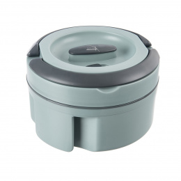 Termomísa v plastovém obalu s nerezovým vnitřkem udrží vložený pokrm po dlouhou dobu teplý nebo naopak chladný. Víčko je na závit a je opatřeno silikonovým těsněním a sklápěcími uchy pro snadné a pohodlné přenášení. Pro snadnější a bezpečnější otevírání je víčko opatřeno ventilem, který je potřeba před otevřením termomísy otevřít, tím se uvolní přetlak. Na boku termomísy je úchyt, který zajistí pohodlné držení při uzavírání a otevírání víčka. Využijete ji v domácnosti, zaměstnání i na cestách, v létě i v zimě. Skvělé izolační vlastnosti. Je lehká, snadno přenosná. Výborné využití v horkých letních dnech na zmrzlinu. Délka udržení teploty v nádobě závisí na okolní teplotě, resp. teplotním rozdílu vnější teploty a teploty uvnitř nádoby. Před vložením studeného pokrmu, např. zmrzliny, vložte otevřenou nádobu cca na hodinu do ledničky, prodloužíte tím chladící efekt. Při vkládání teplého jídla nalijte dovnitř horkou vodu, kterou zhruba po 1-2 minutách vylijte. Materiál: nerez, plast PP, polyurethan, silikon (těsnění). Rozměry: pr. 22 cm, v. 14,5 cm, užitný objem 1,2 l, celkový objem 1,4 l. Není vhodná do myčky ani MVT. Neobsahuje BPA.