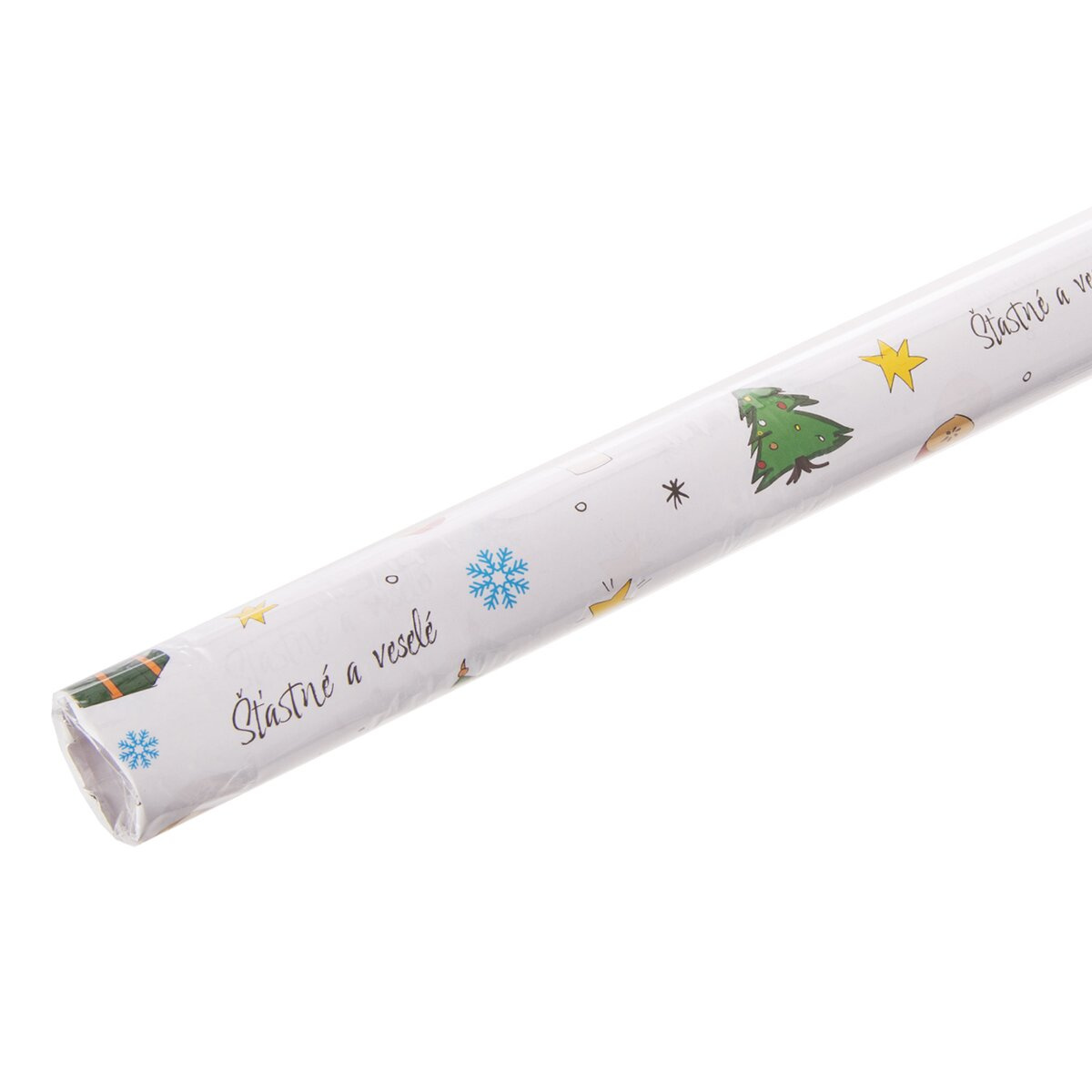 Balicí papír s vánočním motivem Šťastné a veselé. Originál dekor Orion. Materiál: papír. Rozměry: d. 500 cm, š. 70 cm.