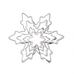 Vykrajovací formička VLOČKA – sada 4 ks. Materiál: nerezová ocel. Rozměry: pr. 2,5/3,8/5,5/7,5 cm, v. 2 cm. Lze mýt v myčce na nádobí.