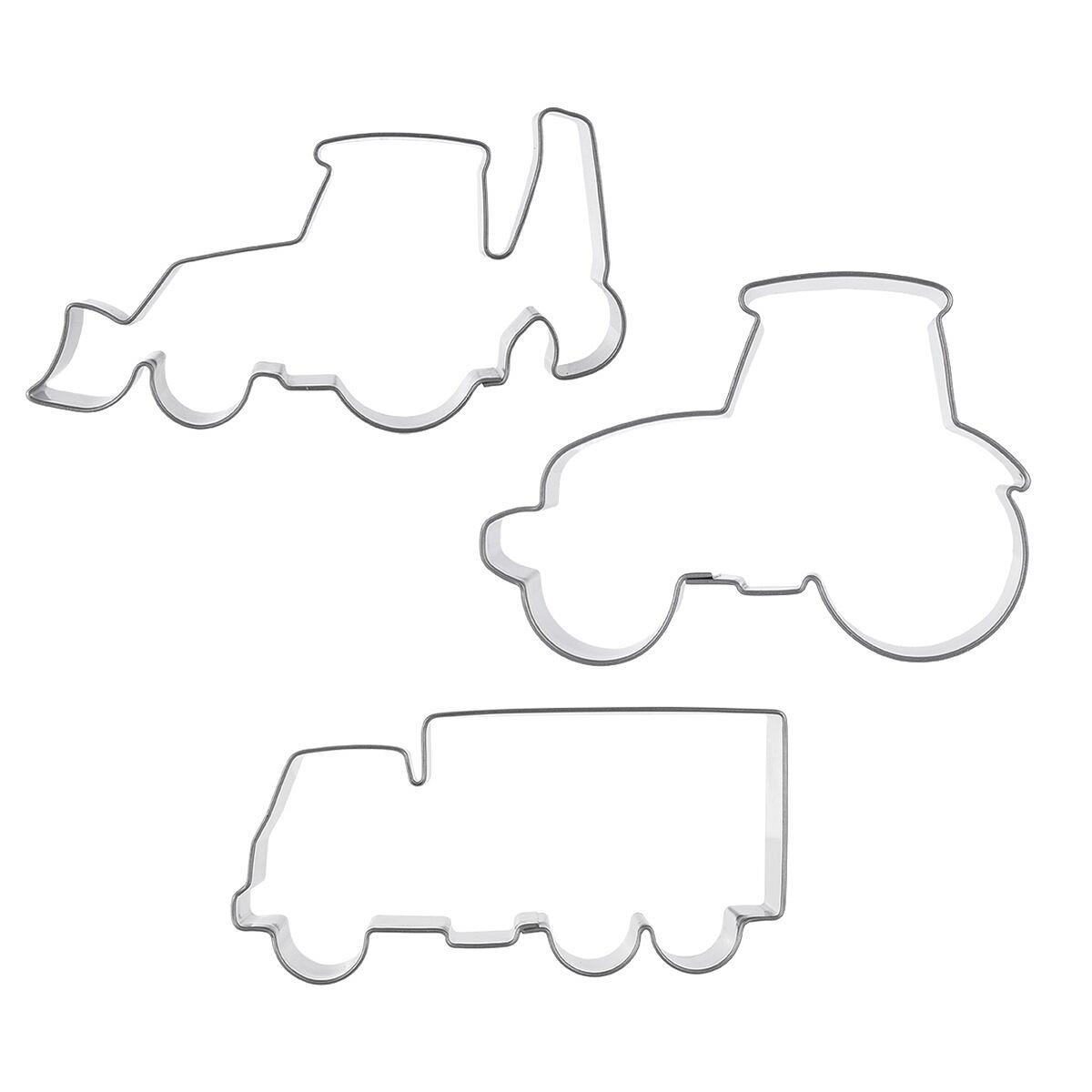 Sada vykrajovaček vám umožní vytvořit si doma voňavé perníčky. Sada obsahuje 3 tvary: traktor, bagr a nákladní auto. Součástí balení je recept. Materiál: nerezová ocel. Rozměry: 6,2x4,8x1,5 cm, 9,2x4,7x1,5 cm a 7,8x3,7x1,5 cm. Vhodné do myčky na nádobí.