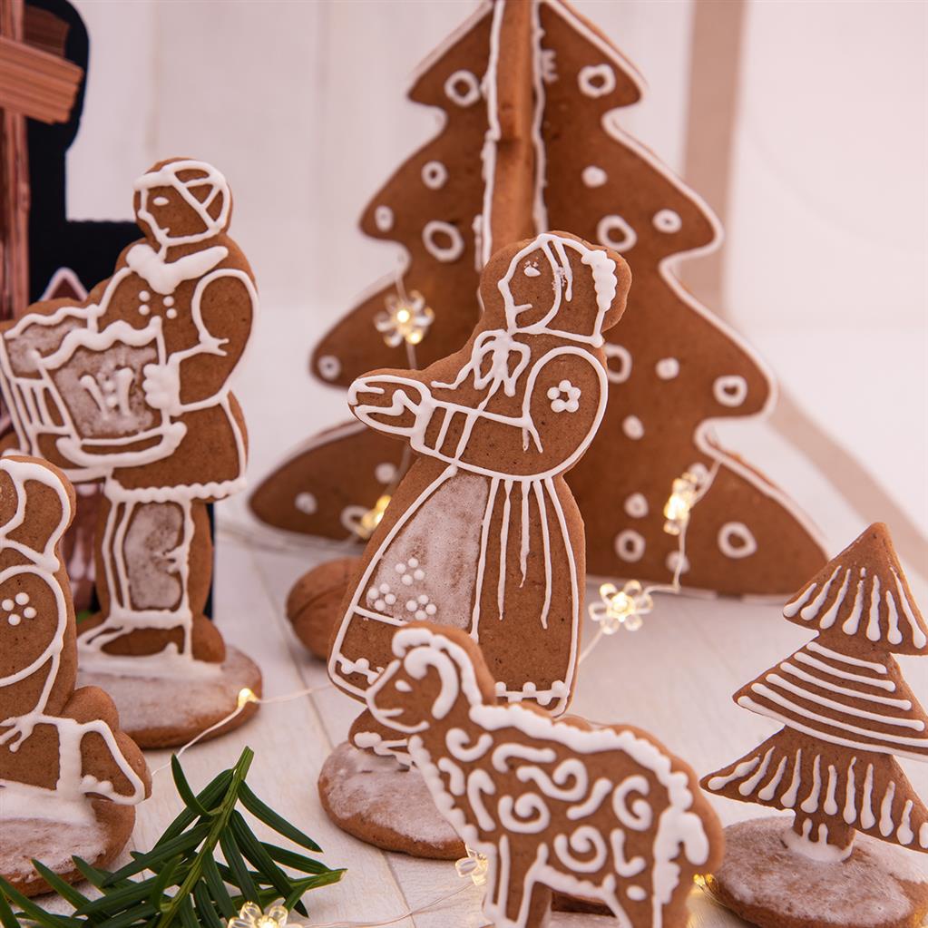 Sada 2 dílů vykrajovaček vám pomůže vytvořit 3D perníkový stromeček. Buď může stát samostatně jako vánoční dekorace nebo se může stát součástí Betlému. Každou část vykrojíte 2x a po upečení je ve středu spojíte cukrovou polevou. Materiál: nerez. Lze mýt v myčce nádobí. Rozměry: v. 15 cm, š. jednoho dílu 7,5 cm.