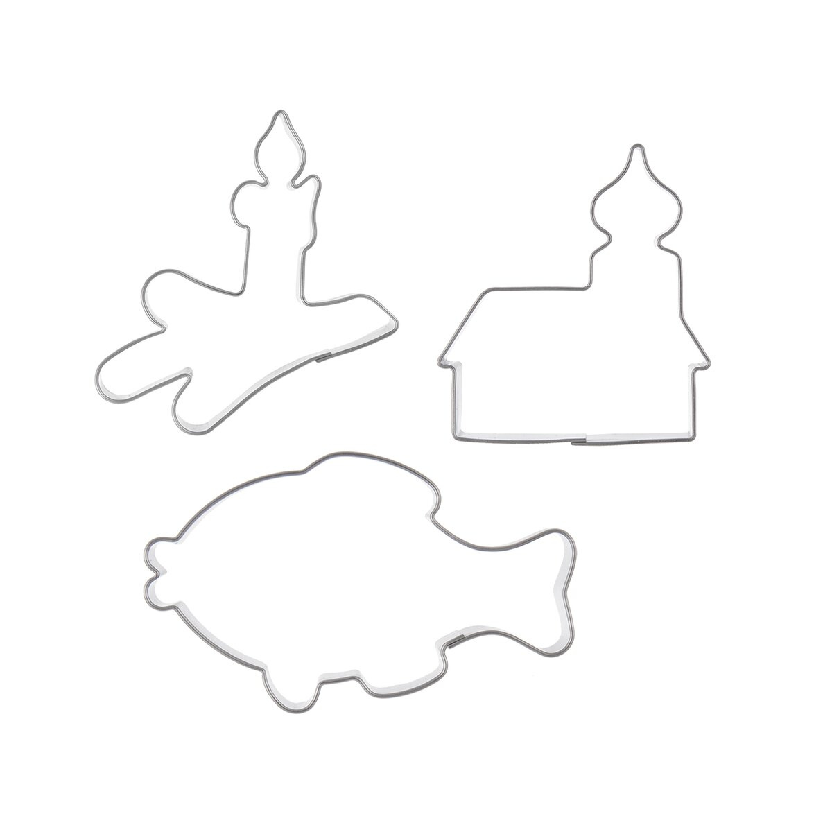 Sada vykrajovaček vám umožní vytvořit si doma voňavou zimní dekoraci pro adventní období a čas Vánoc. Sada obsahuje 3 tvary: kapra, svícen, kostel. Součástí balení je recept. Materiál: nerezová ocel. Rozměry: 7x4x1,5 cm, 5,5x6x1,5 cm, 5x5,5x1,5 cm. Vhodné do myčky na nádobí.