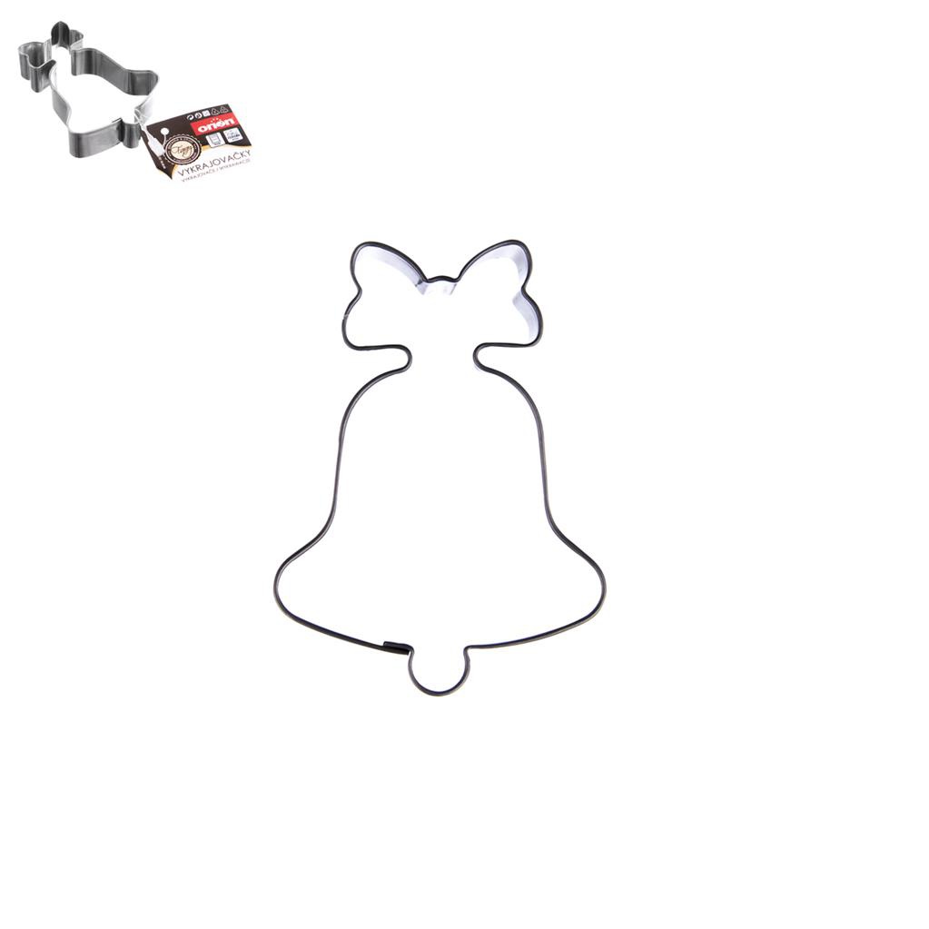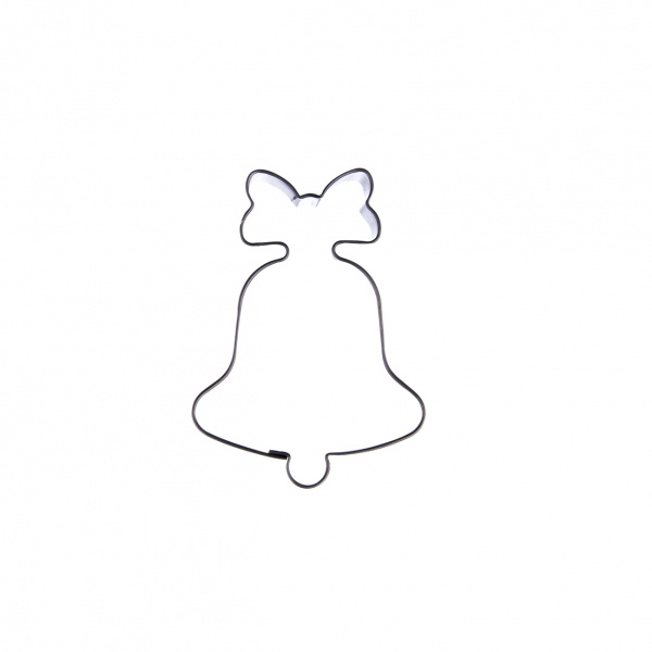 Vykrajovačka zvonek s mašlí. Materiál: nerez. Rozměry: 4,5x6x 1,5 cm.