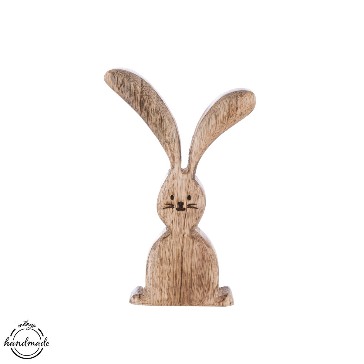 Drobná dekorace zajíčka oživí domácnost nejen o velikonočních svátcích. Díky svému roztomilému vzhledu je vhodná také jako milý dárek pro vaše blízké. Materiál: mangové dřevo. Rozměry: 12,5x2,3x20,2 cm.
