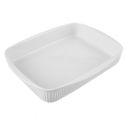 Zapékací miska. Plastický vzor – vroubky. Materiál: český porcelán. Rozměry: 36,5x30x6 cm. Lze mýt v myčce na nádobí, používat v troubě i MVT. Český výrobek.