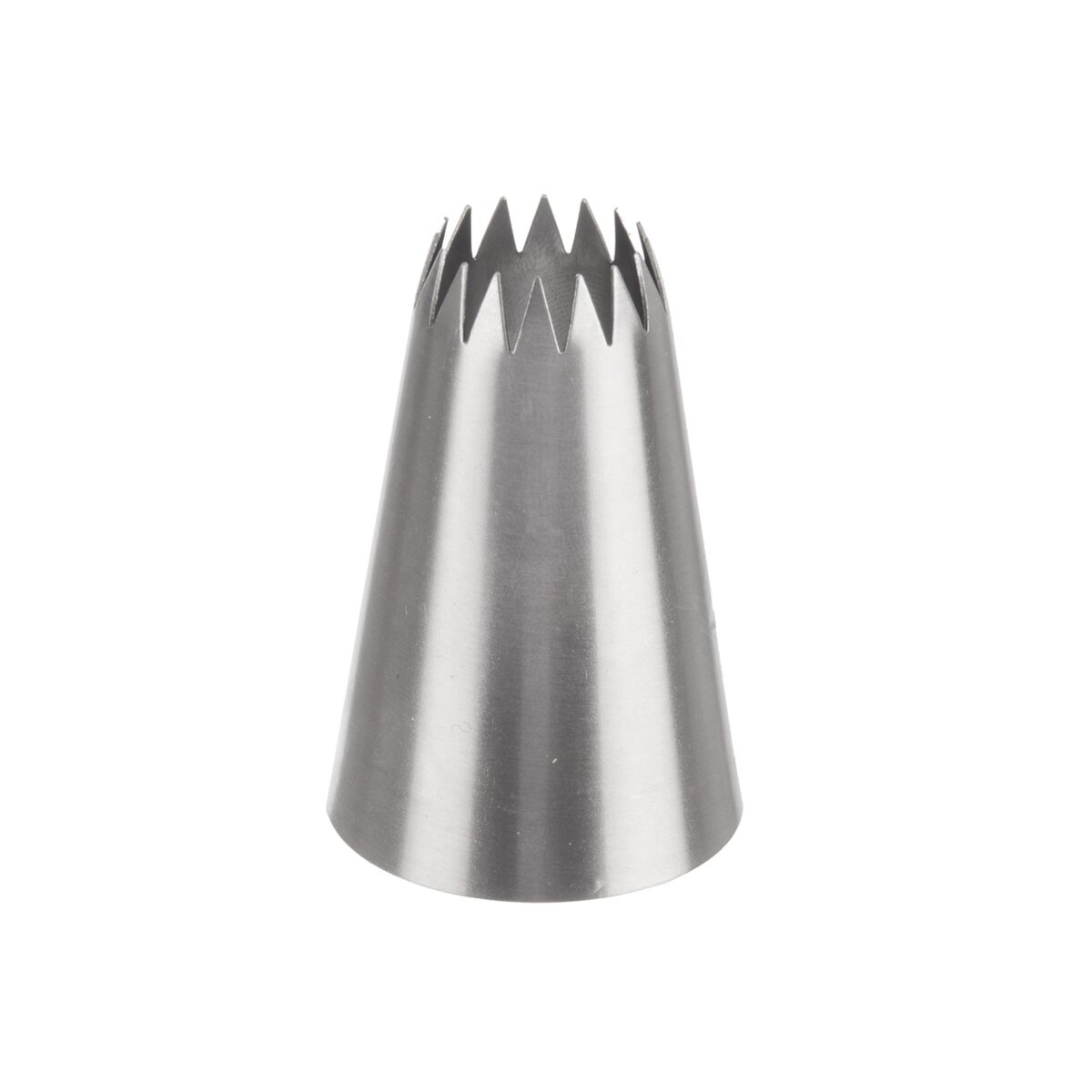 Zdobicí nerezová špička s 16 cípy je určena pro zdobení dortů, zákusků, muffinů, cupcaků a dalších dezertů krémem. Také s ní můžete zdobit jednohubky pomazánkou. Používá se společně s cukrářským sáčkem. Materiál: nerezová ocel. Rozměry: pr. 1,8/3,1 cm, v. 4,5 cm. Lze mýt v myčce.
