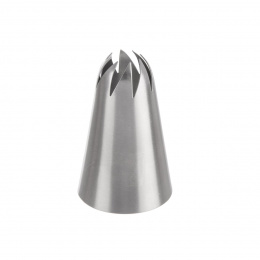 Zdobicí nerezová špička s 8 cípy je určena pro zdobení dortů, zákusků, muffinů, cupcaků a dalších dezertů krémem. Také s ní můžete zdobit jednohubky pomazánkou. Používá se společně s cukrářským sáčkem. Materiál: nerezová ocel. Rozměry: pr. 1,8/3 cm, v. 4,7 cm. Lze mýt v myčce.