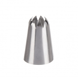 Zdobicí nerezová špička s 9 cípy je určena pro zdobení dortů, zákusků, muffinů, cupcaků a dalších dezertů krémem. Také s ní můžete zdobit jednohubky pomazánkou. Používá se společně s cukrářským sáčkem. Materiál: nerezová ocel. Rozměry: pr. 2/3 cm, v. 4,3 cm. Lze mýt v myčce.