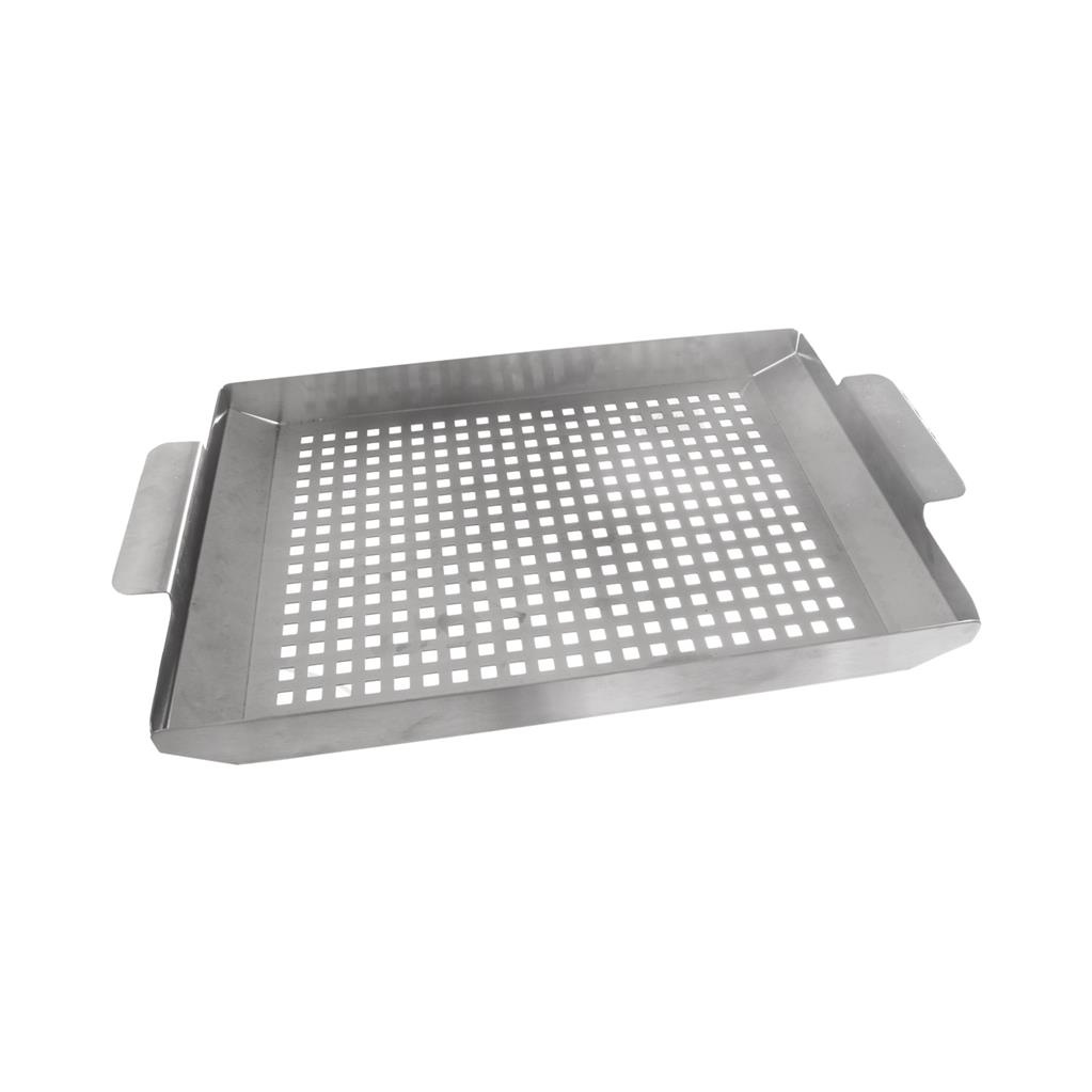 Plech grilovací skvěle využijete k přípravě masa, ryb, špízů a dalších pochutin na grilu nebo v troubě. Maso nebo špízy či ryby položíte na plech a umístíte jej na gril nebo do trouby, můžete použít i na přímý plamen. Pohodlně můžete obsah během přípravy otáčet nebo odstavit, pokud by se vám pokrm připravoval rychleji než zbytek jídla a později dát zpět na žár grilu nebo do trouby. Plech je opatřen otvory, přes které proniká žár. Díky dvěma úchytům se snadno přenáší – nutnost použití kuchyňských chňapek. Materiál: nerez. Snadná údržba – je vhodný do myčky na nádobí. Rozměry: 38,5/33,5x22,5x3/4 cm.