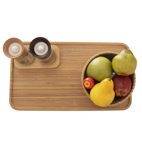 Servírovací tác se hodí k podávání jednohubek, chlebíčků, ale i koláčků nebo dezertů. Materiál: bambusové dřevo. Rozměry: 44x25x1,7 cm.