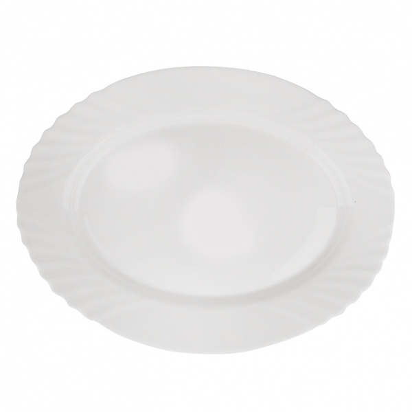Talíř oválný bílé barvy z opálového skla. Vhodný do MVT, myčky i chladničky. Max. 70 °C. Rozměry: 23x15 cm.